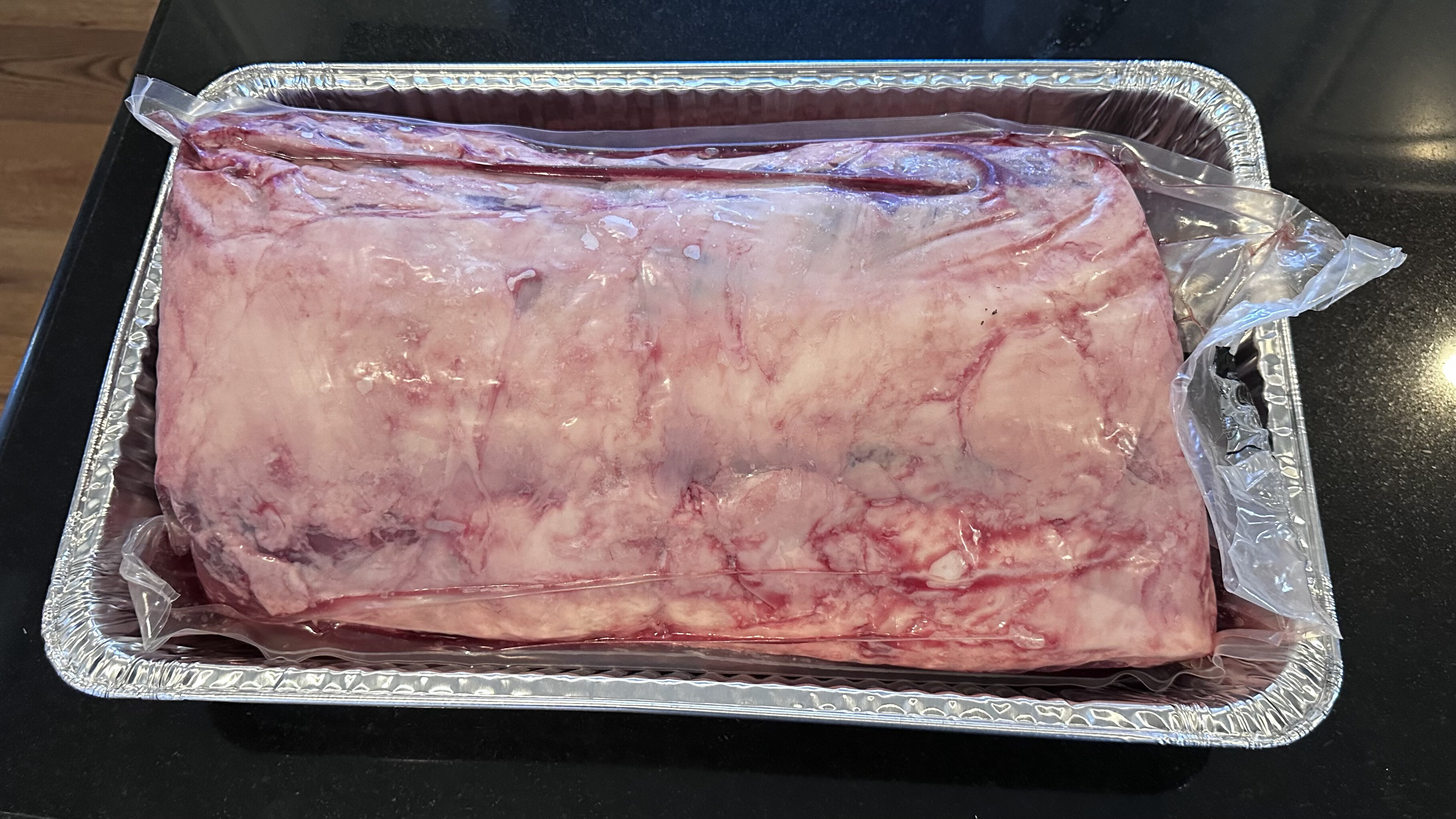 Sigh at price per lb. Broke this one down into a three and four bone roast for tomorrow. Some light trimmings that will go into venison grind.