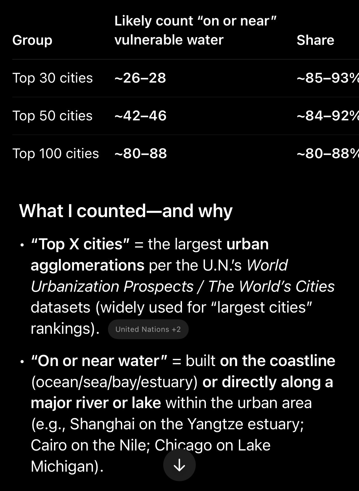 i decided to do the meta thing and used AI to see how many of the world’s major cities project to be seriously affected by climate change in the coming decades.