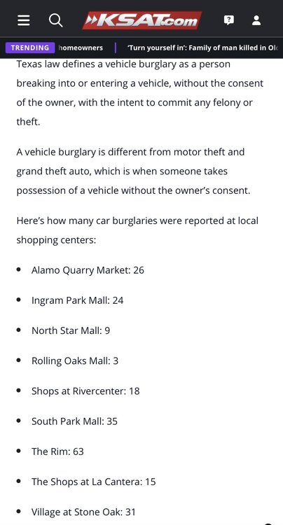 SAPD’s vehicle burglary data from the first half of 2025. The Rim proudly retains the top spot, doubling the closest competitor.
