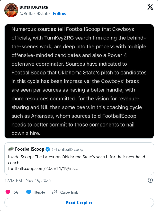 Dolla Dolla Bills Y'all! Everything online of course is with a grain of salt but it has been all but confirmed at a minimum that some donors had given up on Gundy and are likely back in the fold. How much? Who knows. I'm surprised NWA with all its business interests just aren't there yet with football NIL. I think its true based solely on their outcomes. -