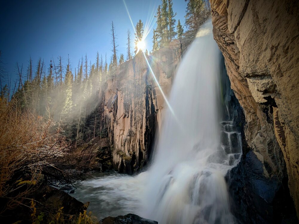 I got to go up to Colorado to do another round of college visits for my younger one and to visit the older one. I absolutely love the drive up there once you get out of Texas. I was blessed with an amazing sunset and this incredible thunderstorm between Ft. Sumner and Santa Rosa. Pics don't even come close to reality: Equinox Brewing in Ft. Collins is one of my happy places. The leaves sure do weird things up there: Gratuitous mountain pics. Sorry, they always look good on my phone but turn out to be way overprocessed otherwise. Short hike to a pretty amazing waterfall: Dear God, the weather was beautiful. Amazing to wake up to this but go out by the river, sit in the morning sun, and feel perfectly comfortable at 27deg: Pics of marginal trout are in the fishing thread, but including this little guy who was very displeased that I was taking up his spot. He proceeded to dip in the water and scare everything out of the hole (explaining my lack of trophy fish pics).