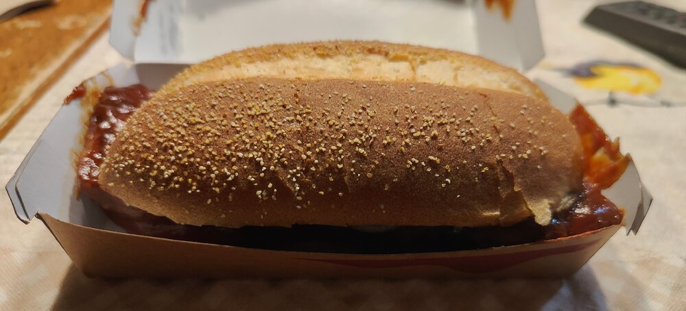 Night crew check-in. How about this for criminal meat assault, although it may not be criminal to be from the source of this 'meat'? To be honest, the mucky sweetness was nostalgically delicious, but I won't need another one of these for a decade.