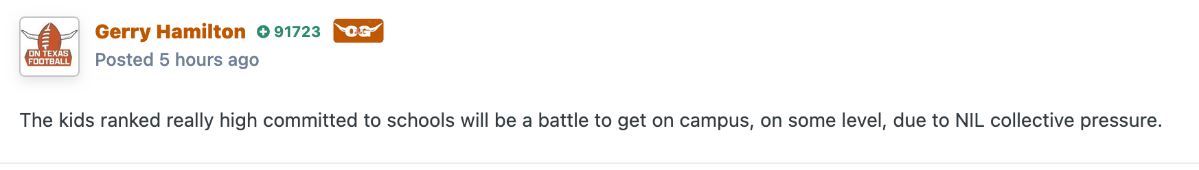 Relevant to this discussion: Thursday By Bobby Burton While the focus for many fans rightly remains on the rest of the Longhorns’ regular season, behind the scenes is a different story for much of the Texas staff. Steve Sarkisian and his personnel team are prepping diligently for next spring and the 2026 season from a roster construction standpoint. Gerry Hamilton wrote this morning about a number of potential high school prospects (and possibly a junior college player or two, as well). While adding new talent to the mix is always important, it is far from the only moving roster piece currently receiving major attention of the Longhorns’ coaches. There is the 1) retention and 2) attrition of current players on the roster to be concerned with. And then there are 3) potential additions via the transfer portal. Texas is working on all three aspects, plus 4) high school recruiting. We hear a lot about high school recruiting, but not much about the current roster. That is by design during the football season. No one wants to take away the focus on the season itself. So Brandon Harris and the personnel staff are like ducks swimming in a pond right now. Things may appear calm, cool and collected above water, but beneath the surface, they’re paddling as fast and efficiently as they can. To this point, outside of a couple of players, like Jerrick Gibson and Will Stone, no other current Longhorn has announced a decision to enter the transfer portal. Surely there will be more attrition. But who and how much? That’s what no one, including Texas or even the current players, knows for sure. Perhaps the biggest factor lording over the situation is the new revenue sharing limits. For many teams across the NCAA, that will mean more money to distribute to rosters. For some, like Texas, it might mean less than previous years. And that will be the most interesting aspect of the off-season. How do the new revenue sharing rules and limits effect roster construction? Will it hurt a team’s depth? After all, a second teamer at Georgia could be a starter at Maryland. Will it change the personnel focus from high school recruiting to player retention? How do you best combine all of those four aspects to create not only the best team for 2026 but the best program for the long haul? We don’t have the all the answers quite yet. No one does IMO. So I get the distinct feeling that this may be the most interesting off-season in college football ever. Prepare yourself for it now, just like the Texas personnel staff is already behind the scenes. I think it’s going to be wild. -