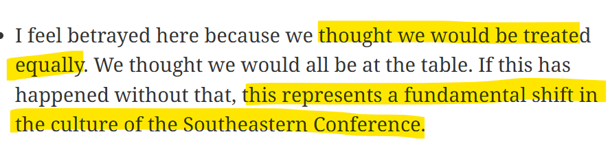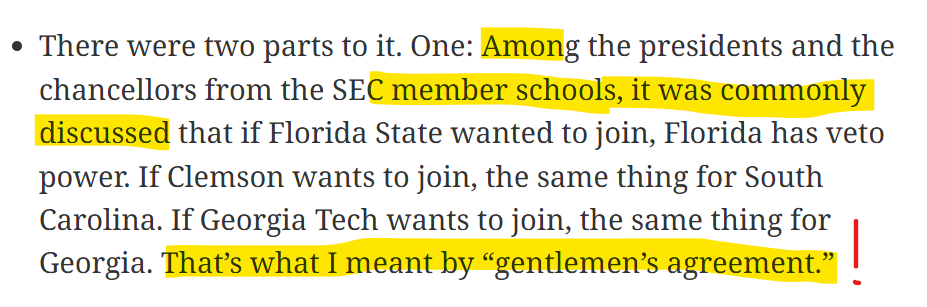 Whoa there, hoss. You mean hearsay about other quiet agreements led you to assume you had a similar agreement even though it was never discussed? You think a gentleman's agreement is wholly unspoken and transferrable? You got over your skis using that term. A gentleman's agreement is generally done with a handshake after discussing terms. It's not an assumption that you have an agreement because other people do. Bowtie was more than a little dishonest. Nope, you made foolish assumptions and/or stated them to Aggies to pump yourselves up. You're not the arbiters of SEC culture. You're wannabes who assumed a seat near the head of the table and got tossed out of it. And they'll laugh him out of their offices after asking WTF is wrong with you? We don't lie to ourselves about agreements nobody ever made. None of this stuff is in writing because nobody wanted to permanently commit to it. Now go get you shine box!