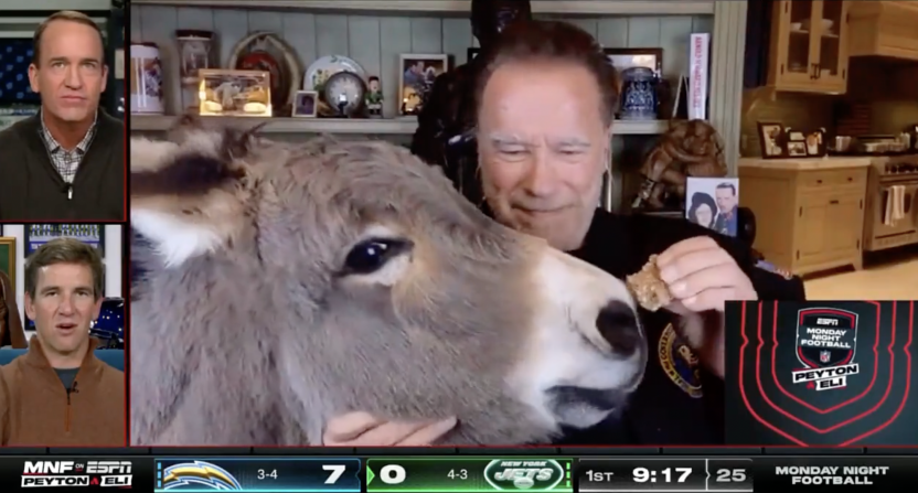 As horrible as that was it wasn’t on the same level as Arnold and his donkey. Watching the Manning Bros during that whole segment before the reception went wonky was amazing.