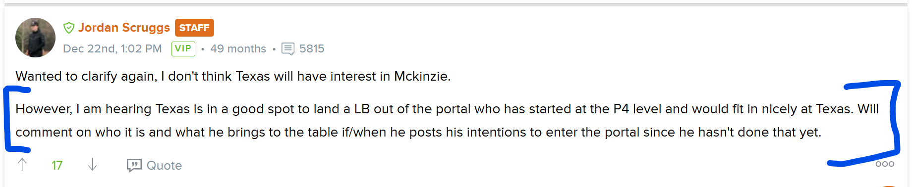 Jordan Scruggs had posted this a week ago: (The first line refers to Oklahoma's Kobie Mckinzie, who had announced his intention to transfer.) Scruggs just posted this comment: