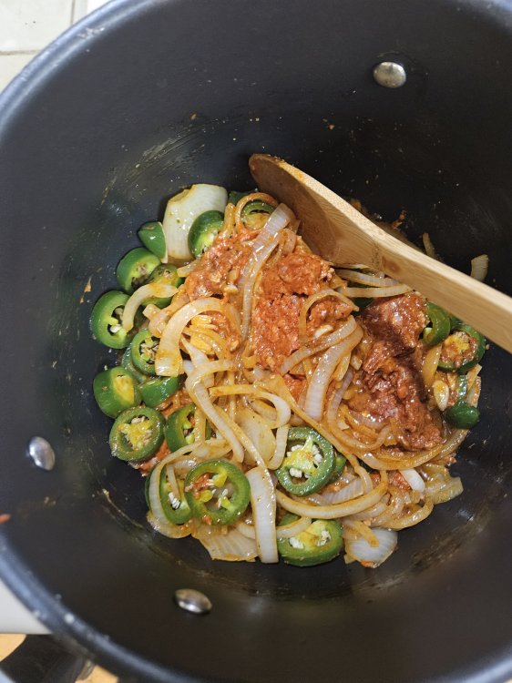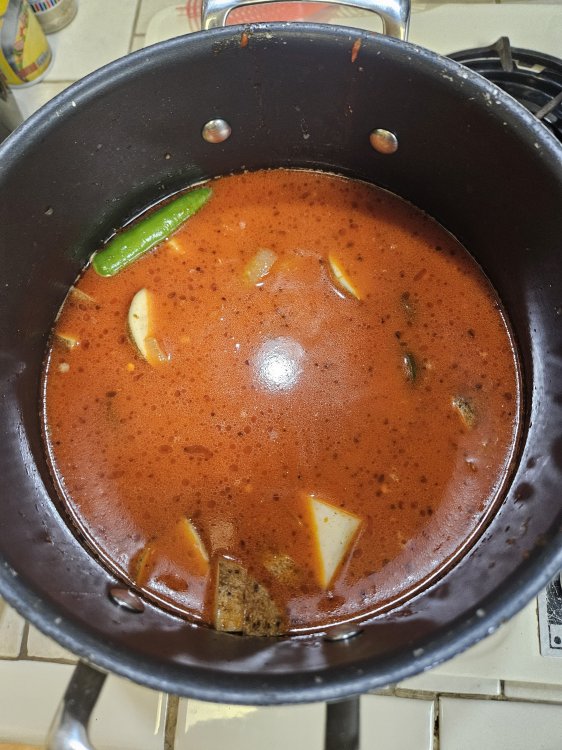 I did some chorizo, garlic, onion, jalapeno, potato soup the other night that turned out pretty well. I forgot to get a good pic of the final product but got a couple of the process. Got ingredients today for another potato one - this time doing rotisserie chicken instead of chorizo and throwing some of those canned adobo chipotles in the mix. I'll try and throw a better start-to-finish in here. Love a long simmer even with soup. I'll generally add water a couple times during the process for anything like that that I do.