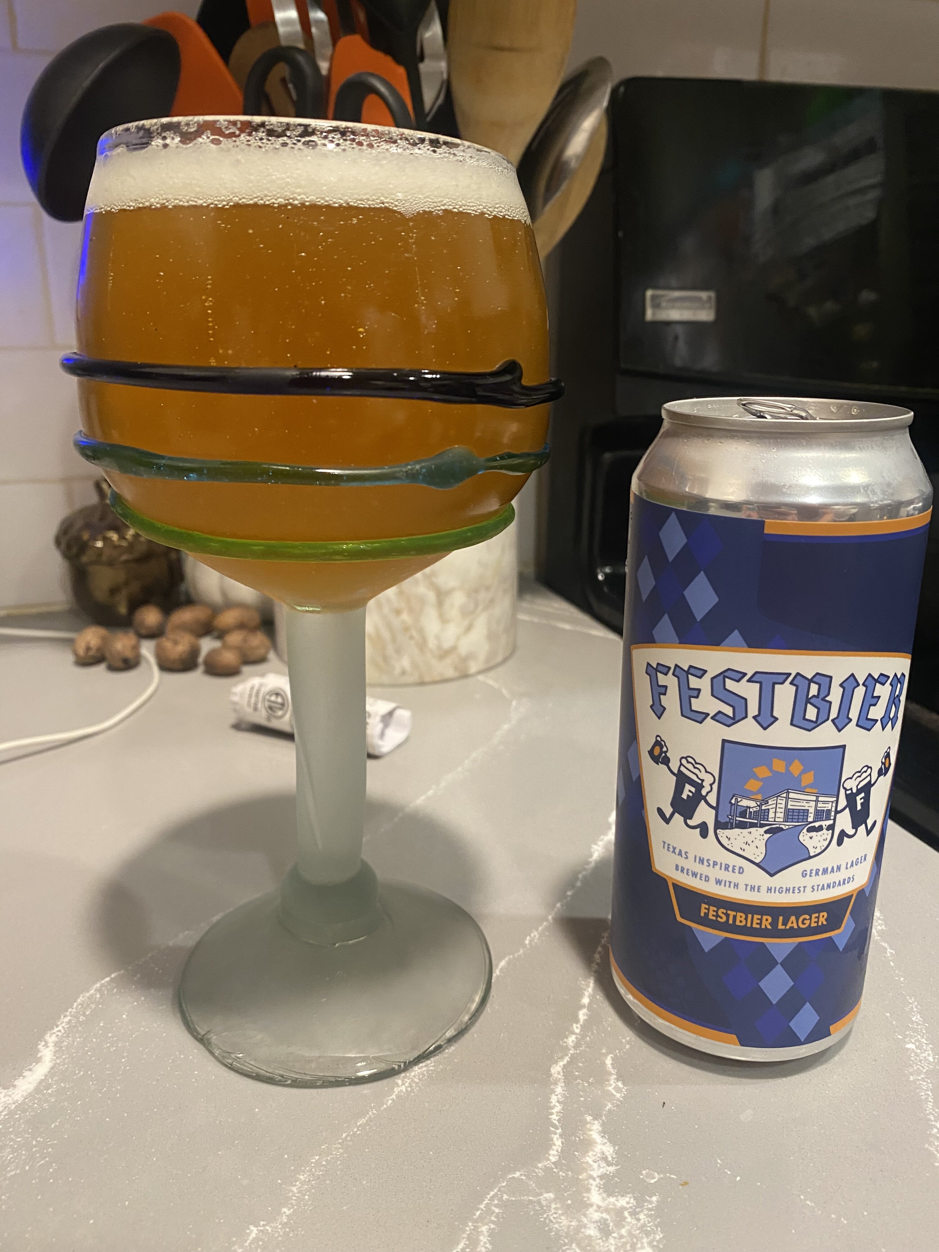 Festbier by Fast Friends Beer Co. out of Austin. 6.3% abv. I haven’t heard of this brewery but found this at heb and am enjoying it. -