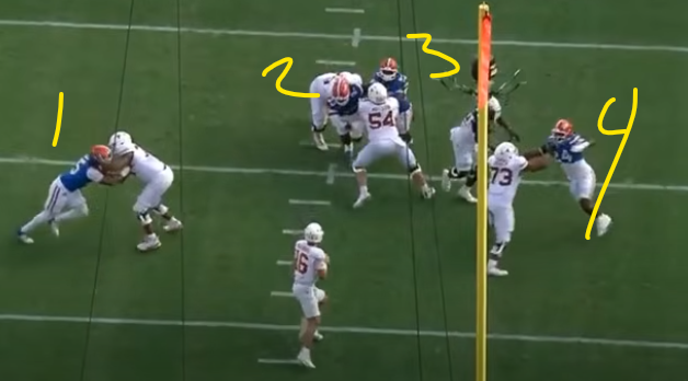 the 2 stop routes are 45-50 yards apart. They run outside opposite hashes. So yes, that is sideline to sideline if you are just reading the 2 stops to get the ball out quick. Neither are going for a 1st down and 1 is a likely pick 6 (to the right). Florida did not bring pressure, what the fuck are you talking about. Everything you just said is made up BS.