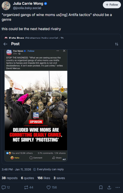 We haven't heard too much from the Proud Boys, Patriot Front, the Three Percenters, or any of those other groups lately. I assume it's because they all got jobs with ICE.- NFL Wildcard Sunday: Bills at Jags, 49ers at Eagles, Chargers at Patriots