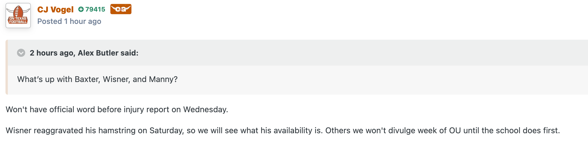 Football ... Basketball ... Baseball ... Other Sports ... Futbol ... 🤫995🤫 ... Gambling ... Movies & TV ... Music ... Hobbies ... Lulz ... Food & Travel ... Daily Texan ... Business and Markets ... Cloak Room ... Help ... For Sale ... Board Discussion ... Subscribe!... Donate!... COOKIE MONSTER!