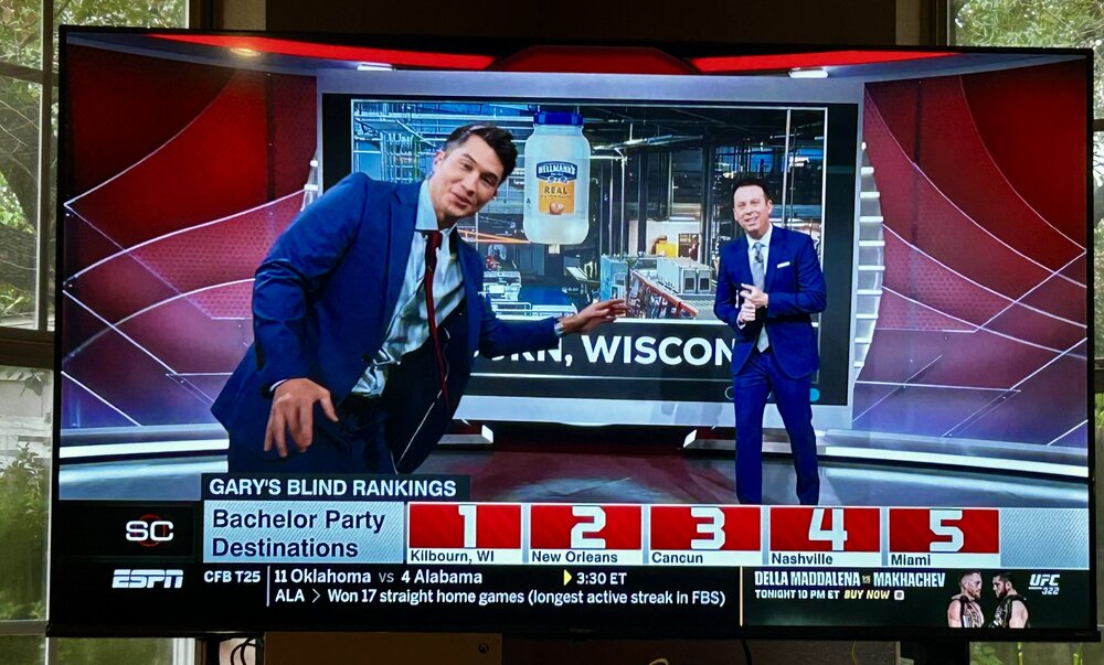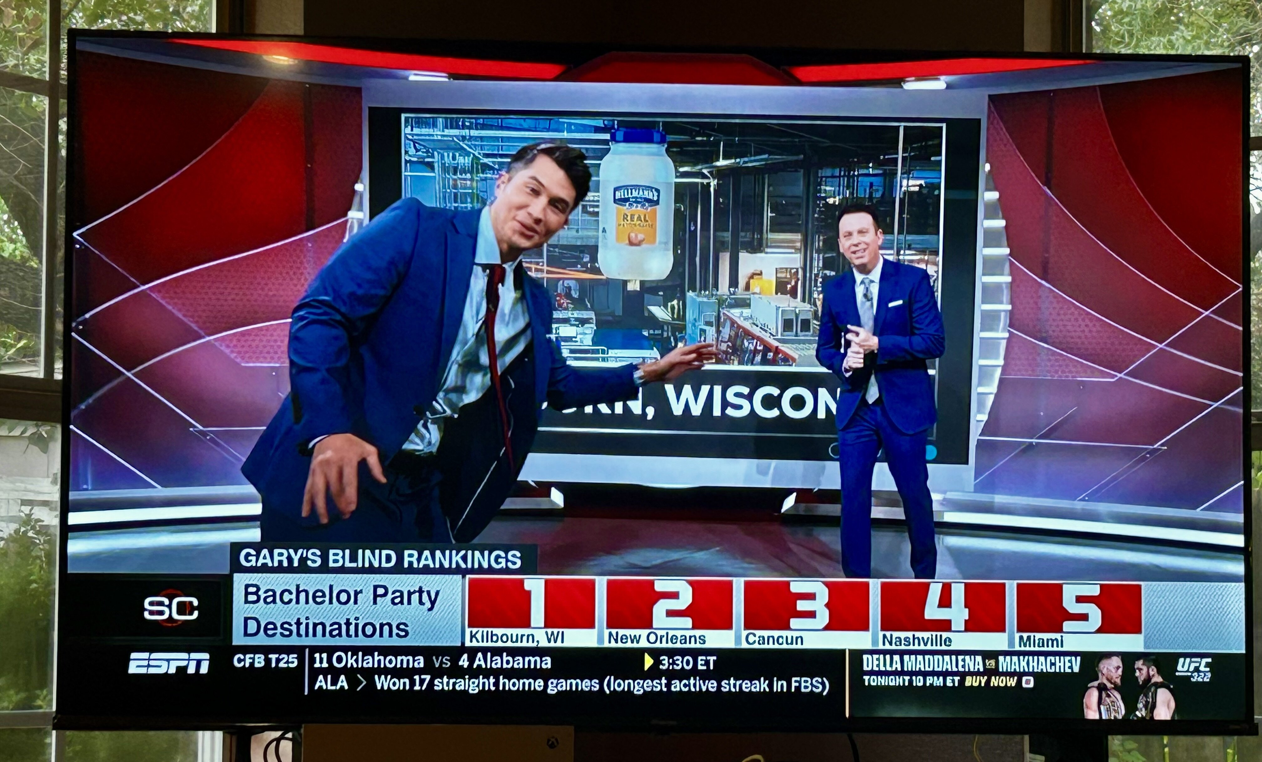 seeing that the disney networks were back i decided to throw on espn just now. they were airing sportscenter, which i haven’t watched it years, snd i was immediately reminded as to why. they had two bro anchors ranking the five best bachelor party destinations. excuse me, but what the fuck. i grew up on rich eisen, dan patrick, kenny mayne, linda cohn, etc. and now this is what the flagship show has become. shit is just as bad as mtv. terrible.