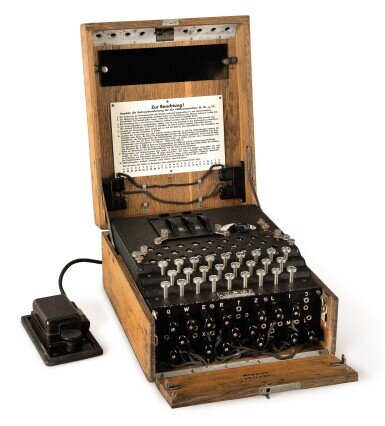 Up for Auction….. WW2 German 3 rotor Enigma machine: http://www.rockislandauction.com/detail/4096/1375/important-historic-wwii-german-three-rotor-enigma-machine