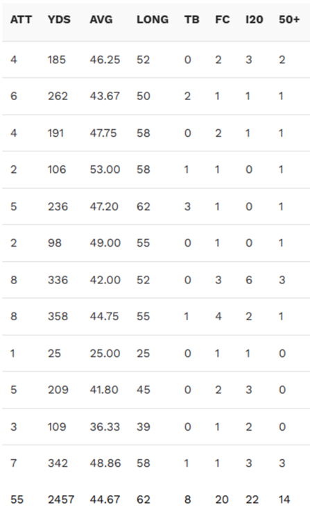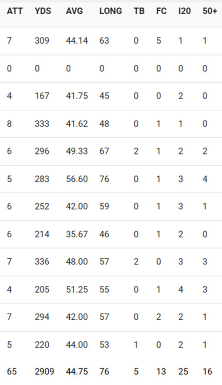 Punting candidate. Numbers aren't far off from our departing punter. He'll be sophomore. Texas incumbent stats
