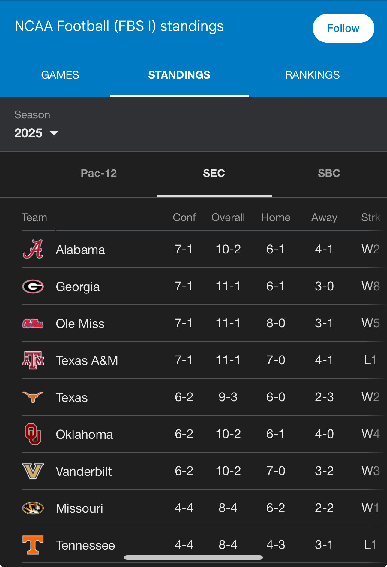 Exactly, and I really don't understand why people are still not understanding it after it's been explained to them 174 different ways all weekend. We lost 2 conference games. *It really doesn't matter which two*. It's okay to go 6-2 against the SEC, even if you should have gone 7-1. If we'd played Rice instead of Ohio State, we'd be comfortably in. God dammit, people. This is not difficult. -