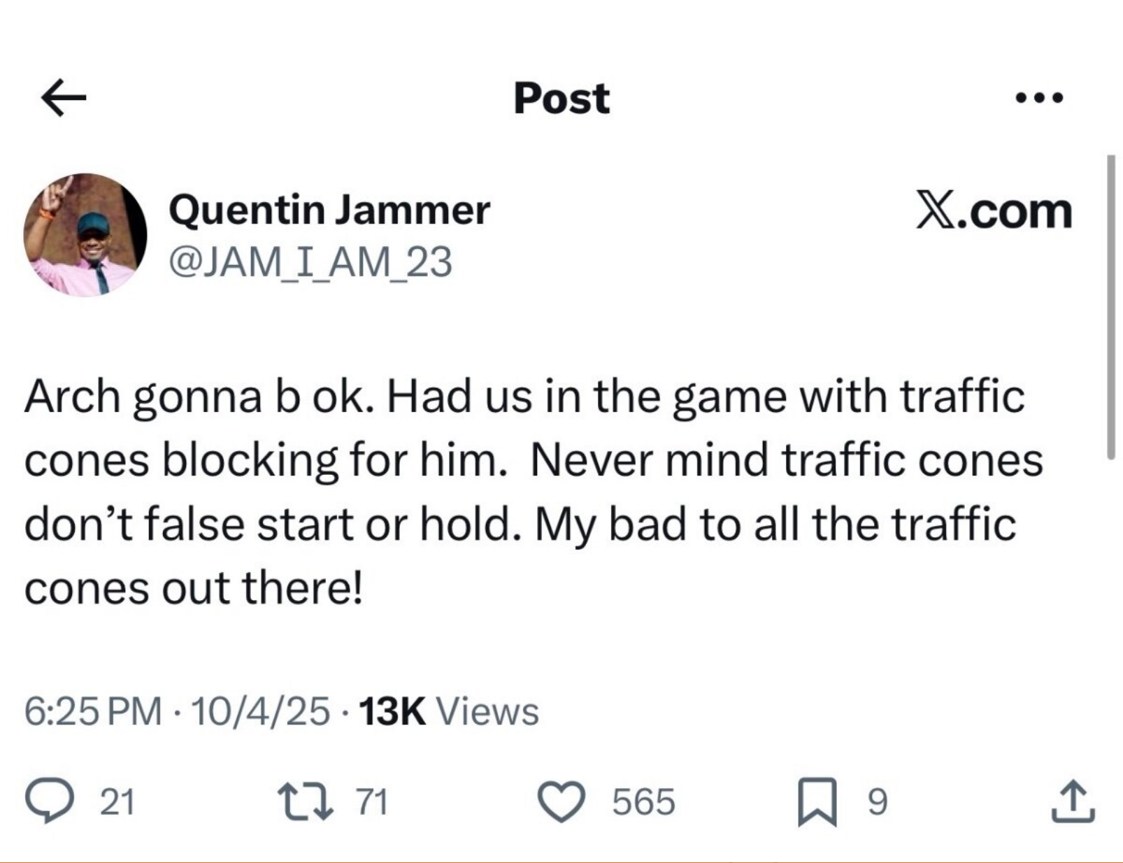 He was far from the biggest issue today. But that doesn't mean he's not a liability right now. He's not seeing the middle of the field very well. Like ever, really. And he misses tons of layups. He's currently a drive killer with the inability to hit easy checkdowns. He can't hit intermediate passes unless he's platformed perfectly. He can't find his feet. There are probably 100 qb's in college right now that might not be as physically imposing as him but would be much more functional in this offense. He flashes an excellent ball 3 or 4 times a game but it's mostly astonishingly terrible otherwise. A dogshit offensive line just makes it worse. The only above average game he's had this year was against a high school team from Huntsville.