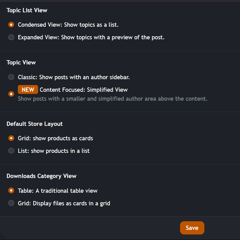 2. That option was under themes but it not there anymore. You can reduce or compress to a smaller avatar in Settings > Content Preferences > Topic View > Show posts with a smaller and simplified author area above content.