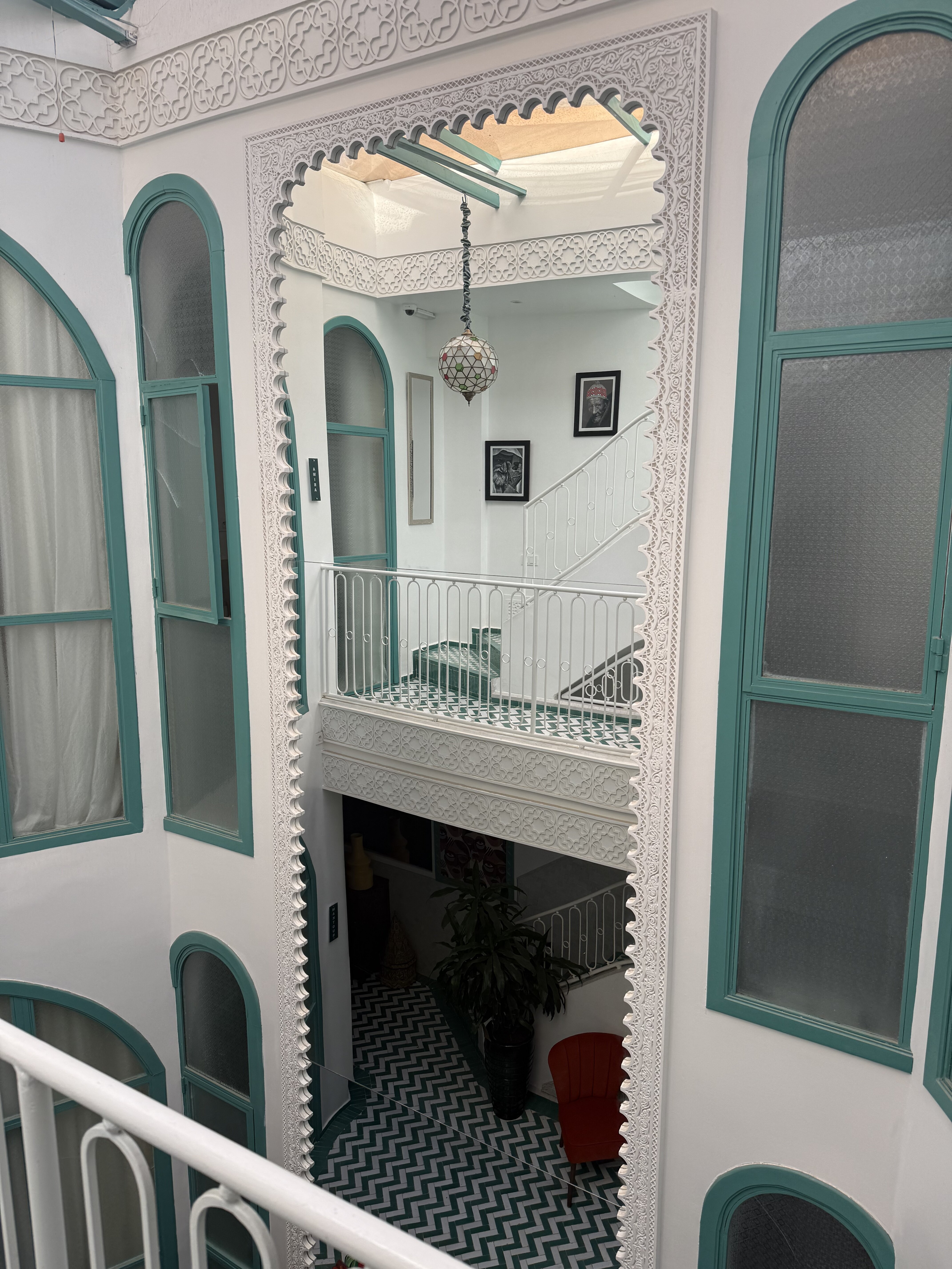 First night and day in Marrakech … row of herb sellers, the mint was unbelievable. Side street in the Medina after dark no hustle and bustle here but the main thoroughfares were packed. Today negotiating for rug and leather goods at a tannery / co-op. And a picture of the tannery. Looks like slave labor and horrific conditions to be quite honest. finish with a busier night market street shot, and the stairwell and roof top restaurant we stayed at our first night in the Medina. people are kind and lovely at least those in hospitality but they do negotiate for sport. Let’s say I consider myself good at it, these guys are the top recruits for sure. Sheesh. on the train to casa Blanca to start our trip, we finish back in Marrakech.