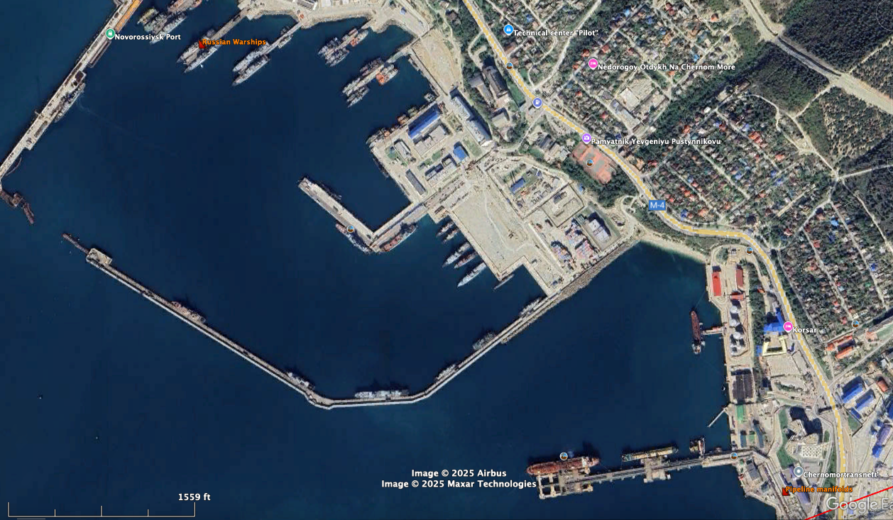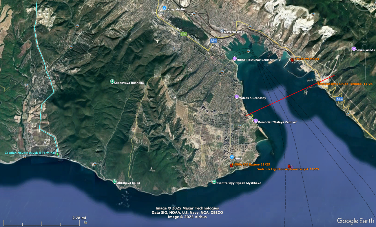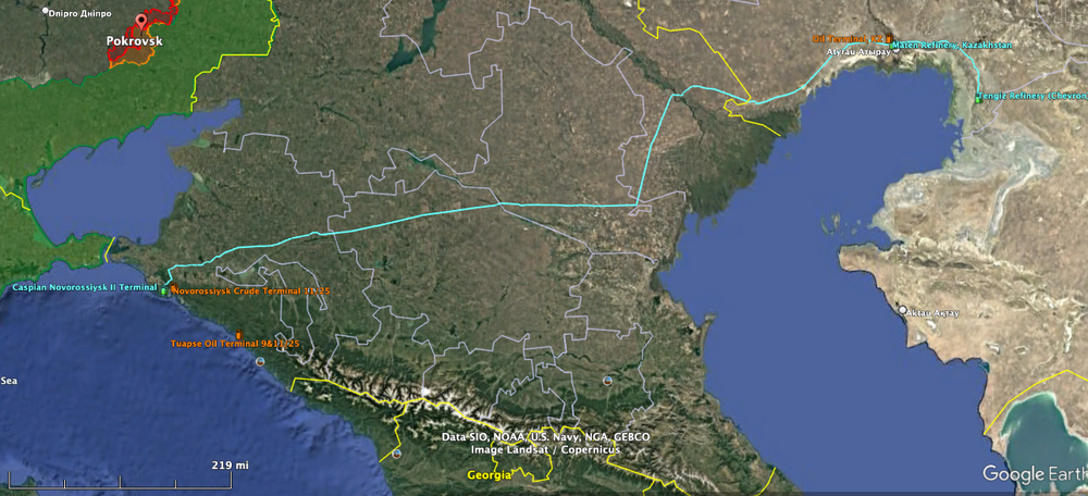 As always, thanks for your informative posts. Just a few random comments, Re: Black Sea Crude Export Terminals There are actually 3 main "Russian" export terminals on the Black Sea. Two of them have been repeatedly attacked over the past few months, Taupse & Novorossiysk, and appear to be inoperable. The 3rd, is the Caspian Consortium export Terminal (at the end of the Kazakhstan Caspian Pipeline), ~10 miles west of the Russian Novorossiysk Terminal, which has been hit repeatedly the past 2 weeks. I previously posted some details on the Taupse Terminal a few weeks ago. Novorossiysk Terminal This terminal and surrounding area has been hit numerous times, with confirmed/probable damages to tankers, loading berths, loading manifolds, pipelines, S-300/400 missile systems, and loading buoys. The red line is the POV from one of the videos showing missile strikes on the terminal, that appear to have damaged the pipeline and loading manifold systems. When you zoom in to that area, the area immediately north of the oil terminal appears to be where Russia has moved what is left of the Black Sea Fleet, from Sevastopol. The image from 10/2024 shows ~ 2 dozen warships, including 3 submarines. I think that some of these may have been hit in the past few months. For reference, you can see the red POV line in the lower right corner. Caspian Novorossiysk Terminal The Caspian Consortium is a Kazakhstan led effort to monetize their resources, including transporting over 1 million bbls/day from KaZ to Russia and the export terminal. Chevron operates some (all?) of the key facilities, along with other multinational companies, with the majority ownership being non-Russian. I expect the location of the Caspian assets, well away from the normal Russian oil infrastructure, was carefully thought out and planned. In the second photo above, you can see the size of the Caspian Tank Farm in the upper left corner, and the 10 storage tanks, each with a 1,000,000 bbl storage capacity. I have not seen anything about the Caspian Pipeline mentioned in any sanctions, or Ukraine attacks, but I would think there was a lot of discussion about this group of assets, and not attacking them. I think Kazakhstan choose their partners wisely.