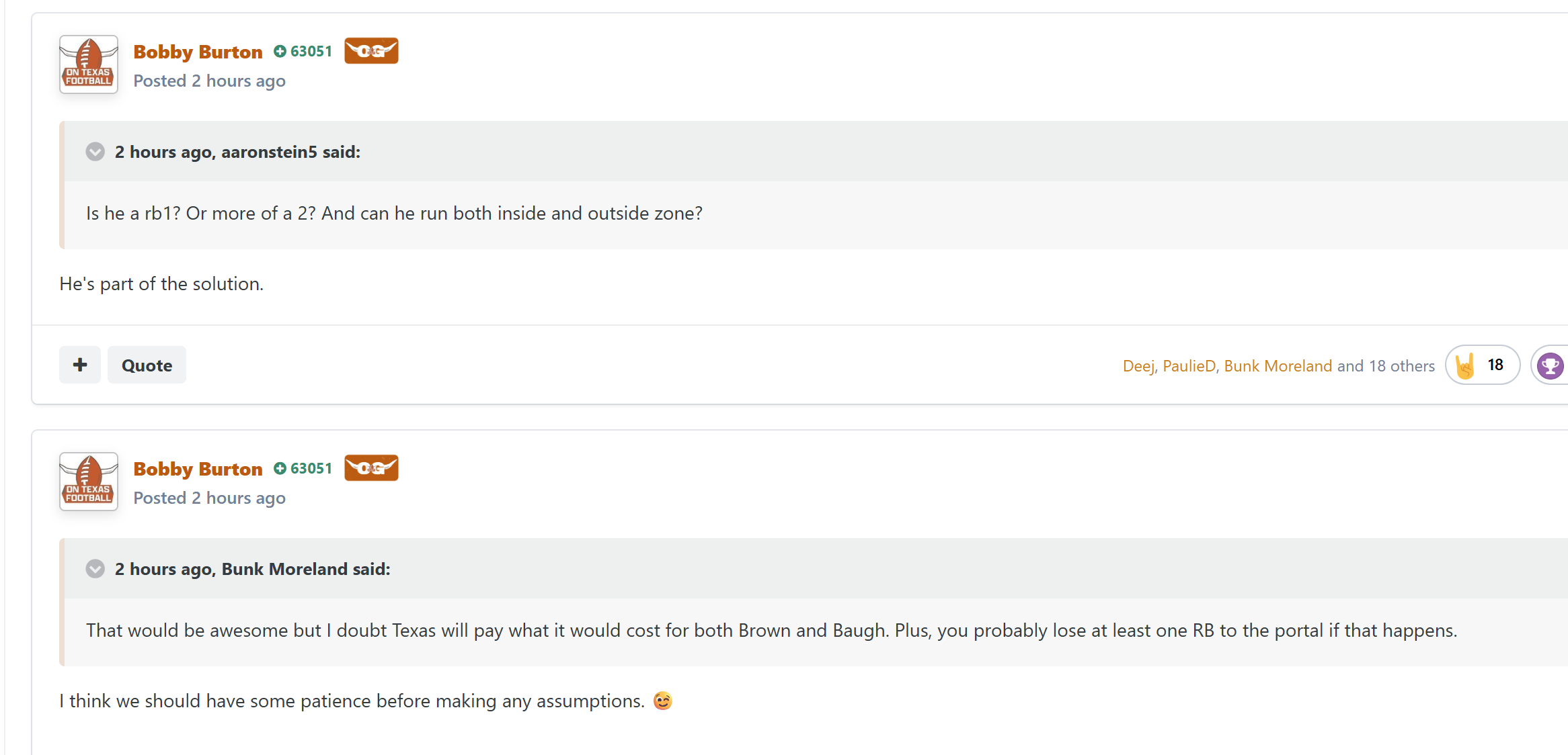 Imo Baugh + Brown would be the absolute dream combo. It sounds too good/expensive to be true but Bobby is very much hinting that it could happen:- 2026 CFP Quarterfinals Orange Bowl - #5 Oregon vs. #4 Texas Tech