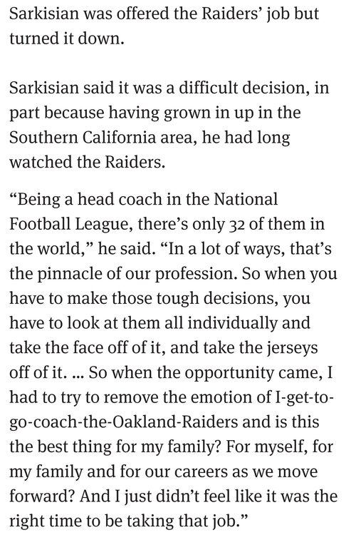 Regarding Sark and the NFL heres a snippet from a 2011 interview. And before we say he'd never get a job offer this year just remember Kingsbury got hired as a HC after Tech fired him 2 months prior. -
