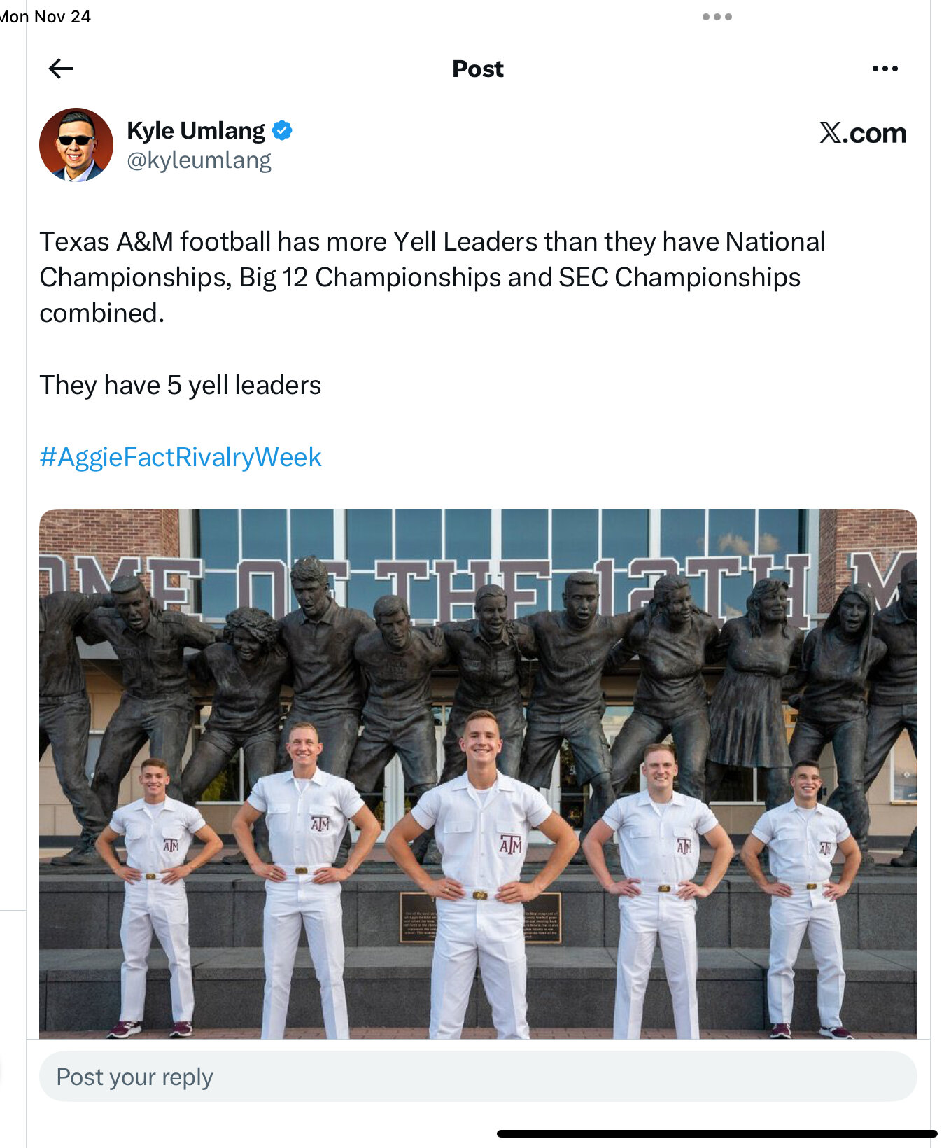 Yep, lose your 3rd straight against Texas so you can brag about the playoffs. That would be absolutely awesome, and then when you lose your playoff game, you've lost back to back games, with absolutely no upside. Fucking idiots, all.
