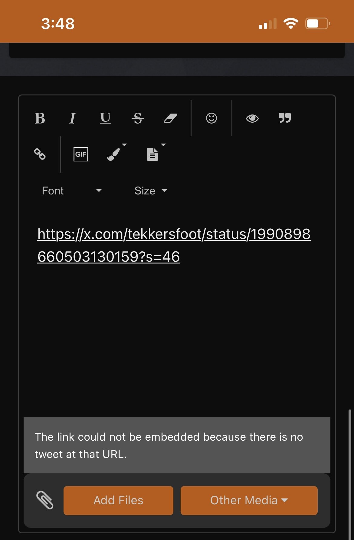 https://x.com/tekkersfoot/status/1990898660503130159?s=46 every time i’ve tried to post a tweet today.