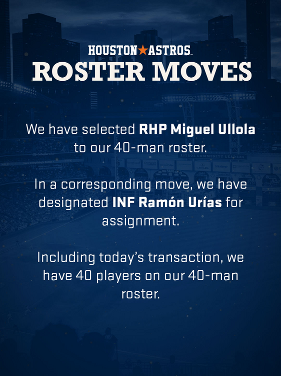 Reminder that 40-man rosters have to be finalized today by 6pm EST to protect them from the Rule 5 draft shit.