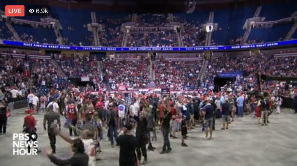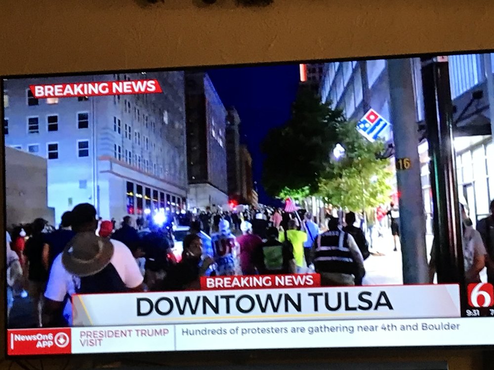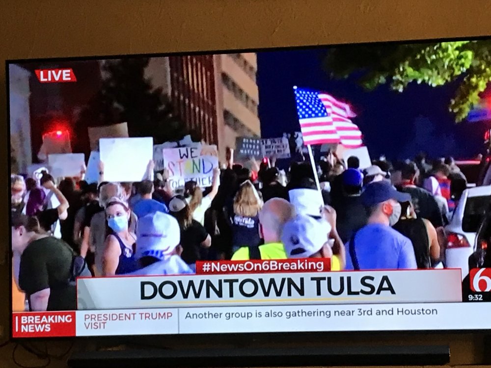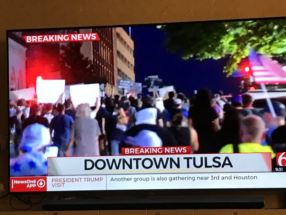 Proud of my city tonight. Half full arena, tons of BLM being peaceful, marching to Greenwood. Reports of a few isolated fights and BLM protesters are insisting on peace. I can tell you between Greenwood and the rally I spent about 30 mi utes at earlier I’d say the anti trump people out at least equaled the maga fucks.10 points