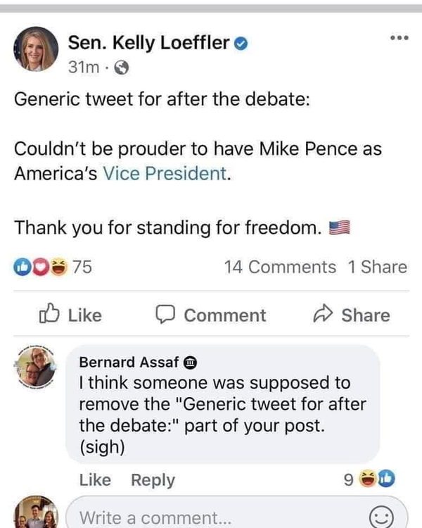 You have seen 4 years of the Trump administration, and over 40 years of Biden as either a Senator or Vice President. If you haven't made a decision one way or the other at this point, or would allow yourself to be influenced by a Vice Presidential debate, the problem lies with you and your analytical short comings.11 points