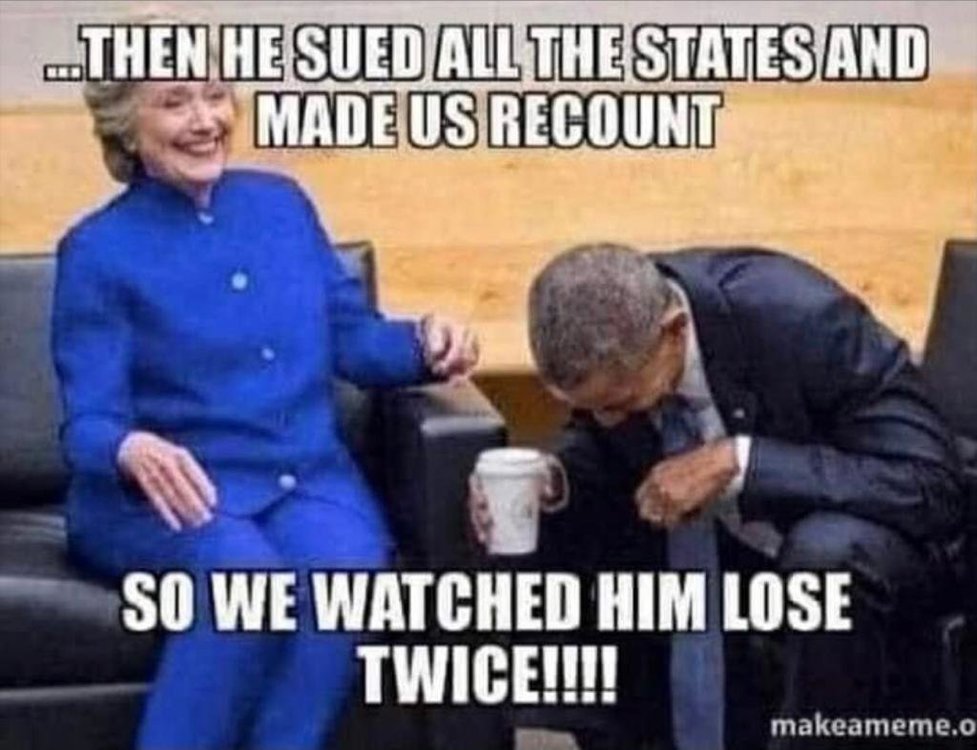 “I demand a recount!” “Okay.” (Recounts the ballots) “Biden gained more votes” “STOP THE COUNT!”17 points