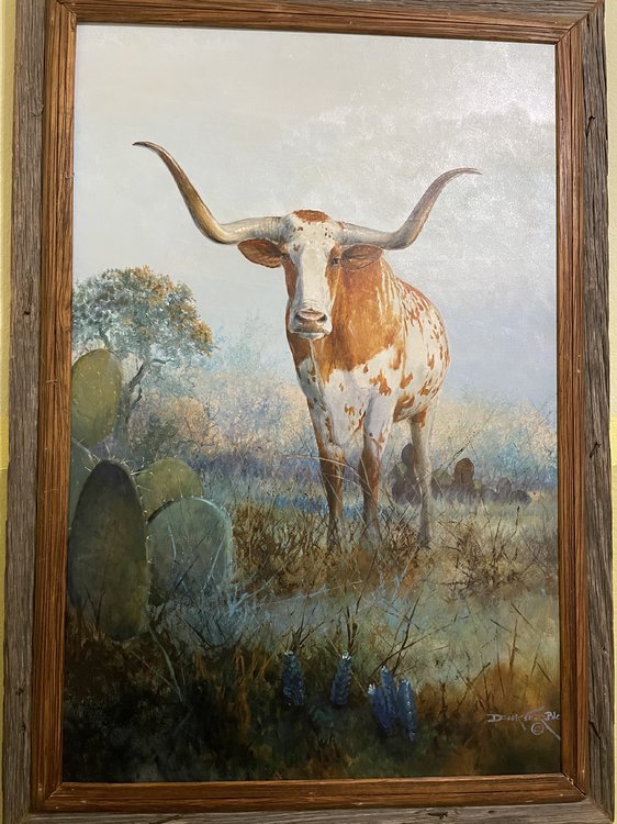 My dad had this painted for me as a graduation present. He collected a lot of oil paintings when he was alive and this guy mostly did deer paintings. Pretty much. My dad approached him and said can you paint a Longhorn for me? The guy was like WTF? Hook’em! I hope today is a good one for the program and the players.37 points