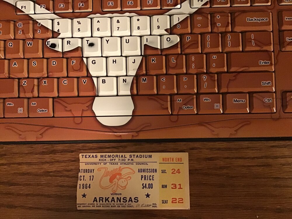 October 17th, 1964 - Memorial Stadium: Defending National Champion #1 Texas playing #8 Arkysaws Pigs, with 1:27 left in the 4th after Ernie Koy scored on a 1 yard run to bring the Horns up to 13-14, then an easy 2 point conversion pass from Marvin Kristynik to Hix Green hit the turf about 2 or 3 yards short of his hands at the goal line. After that excruciating defeat to the despised mouth-breathing pigs, UT went the rest of the season without losing another game, wound up ranked #5, and defeated #1 Alabama & Joe Namath 21-17 in the Orange Bowl. Final ranking was #5, a monumental letdown after the Great 1963 National Championship team. Texas went on to three straight 6-4 seasons, which caused a lot of doubts & dissatisfaction with DKR until he turned it around in ‘68 with the introduction of Emory Bellard’s innovative Wishbone Offense.7 points