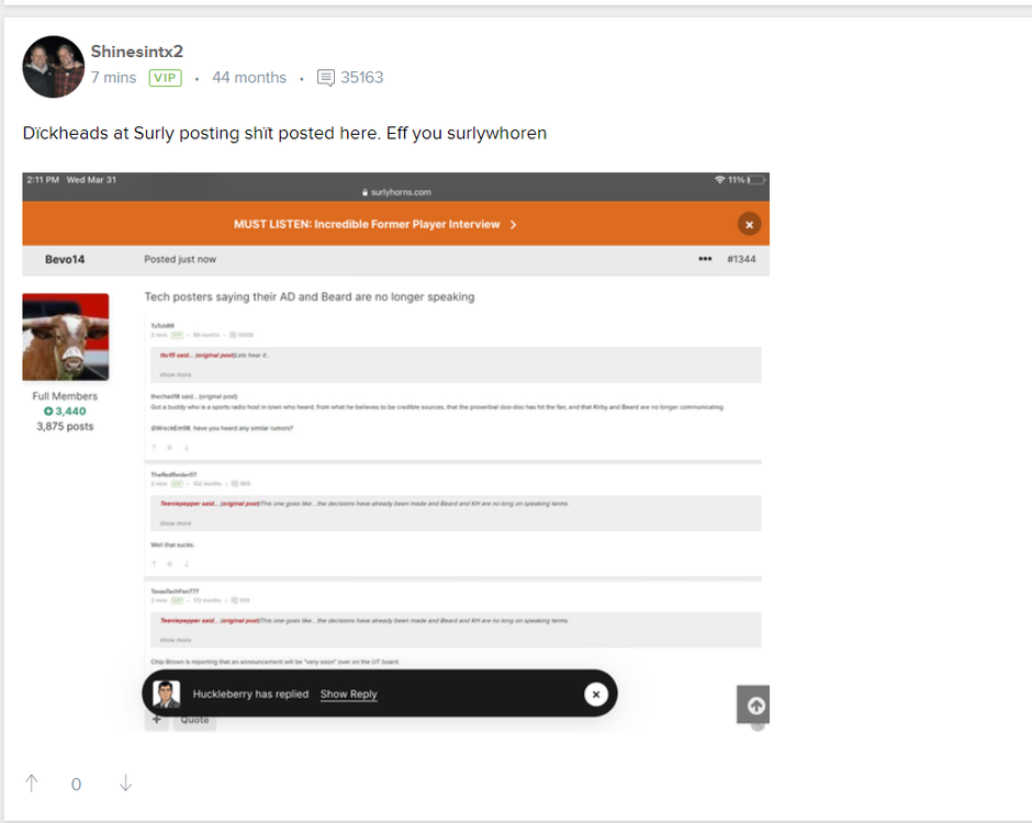 Football ... Basketball ... Baseball ... Other Sports ... Futbol ... 🤫995🤫 ... Gambling ... Movies & TV ... Music ... Hobbies ... Lulz ... Food & Travel ... Daily Texan ... Business and Markets ... Cloak Room ... Help ... For Sale ... Board Discussion ... Subscribe!... Donate!... COOKIE MONSTER!