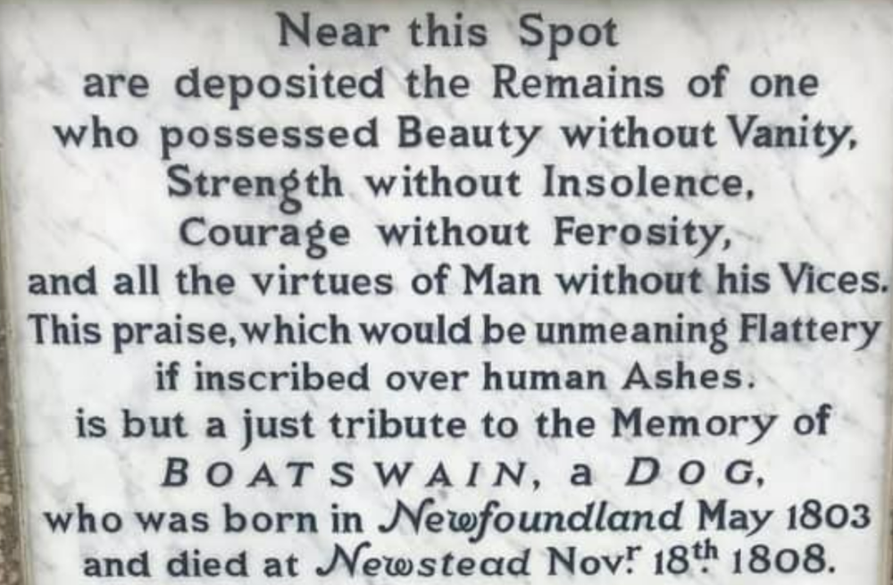 Fucking hell, we had to put Zeus down yesterday. He was a 12-yo Newfie, so we fully realize that we’ve gotten a full life and more out of him, but damn that felt awful. One of the reasons I decided to get a Newfie was the famous epitaph that the English poet Lord Byron wrote on the death of his Newfie Botswain: I thought that was beautiful when I read it and it is more beautiful today because those words just absolutely perfectly describe Zeus. Beauty without vanity? Never seen such a beautiful animal slobber so much... Strength without insolence? In his prime, he weighed 150 with amazing strength. He could have done whatever he wanted in our house, but he only did what he thought we wanted. Courage without ferocity? One trait that I had read about Newfies is that when they sense a threat, they won't bark or growl; they'll just put themselves between the threat and their humans. He was less than a year old when I first saw him do that, stepping between my daughter and a neighbor's new barking dog and just staring it down. Thank you for being in my life for 145 months, buddy.6 points