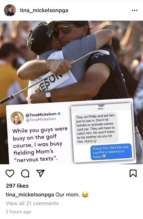 (csb) My daughter was a standard-bearer at the WMO Phoenix Open a few years ago. Her group was finished and she was waiting in the security area for a ride back to the volunteer compound. It was late on a Friday and nobody was around. Phil happens to walk out of the clubhouse and sees her standing by herself. He walks up to her and thanks her for helping out with the tournament. He then asks her if she'd let him autograph her WMO cap. She of course says yes and he signed it and shook her hand. What always impressed me about that was that the only three people in the world to witness that were him, her and me standing about 20 feet away. One of those deals where he didn't have to stop and talk to her and went out of his way to do so for no other reason than to be nice to a 14 year old kid who was standing by herself. Was really happy for him yesterday.8 points