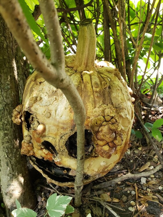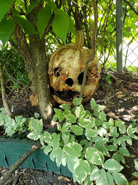 June update. The foliage is now providing some much needed shade, but not before some additional discoloration/fading occurred. And there is now some degree of blistering and peeling skin on the cheek, forehead, and ear/temple areas. I still think it's more likely than not that our friend makes it to Halloween 2021, but odds are slowly diminishing and it's going to be close at the end.7 points
