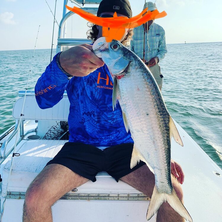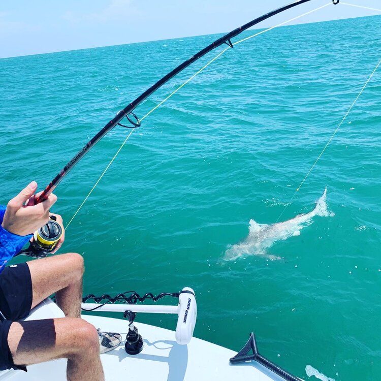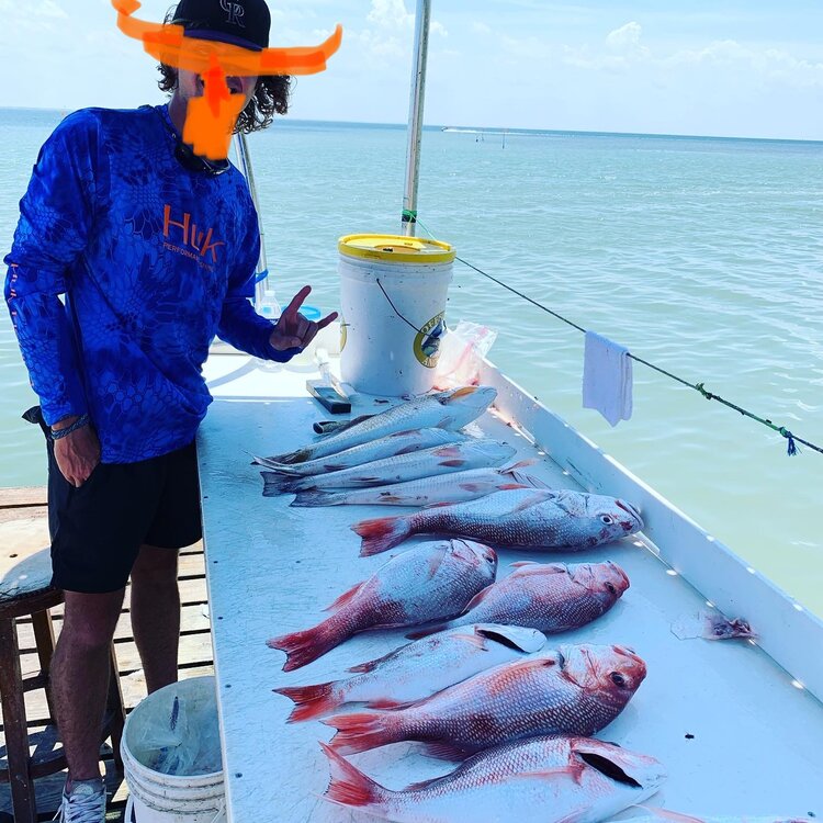 My boy and I fished the South Padre jetties this morning.. We caught a snook, a tarpon, a bull red and 4 slot reds. Then we ran the beachfront north looking for more tarpon. We stopped at a spot about a half mile offshore in 20 feet of water and caught a limit of snapper. we continued north and about 3 miles short of Port Mansfield found tons of birds working and the beachfront all stirred up. We trolled live mullet for big tarpon, which we could see surfacing frequently but could not hook up. We did catch a 100 pound blacktip. We ran thru the Port Mansfield jetties and ran back to SPI via the bay in about a foot of water or less to avoid the chop in the surf.8 points