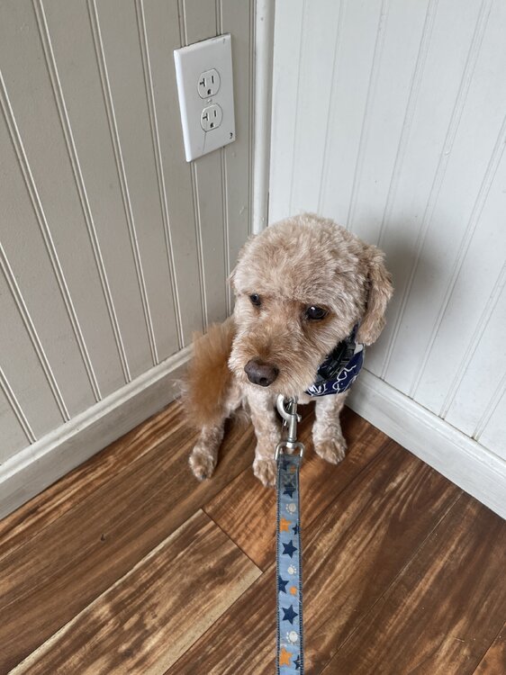 It's been too damn long since I've posted to this thread and I wish that this update brought some better news. Our good boy Dax was doing great about a week ago until he got a little lethargic after a few days on some new meds (heart meds and gut probiotics). I was hoping this was a side effect of the new meds, I wish, turns out he has a lump and internal bleeding most likely due to lymphoma. For those that remember our dog Flash (my avatar), he steadily declined over 4-5 months. This has been the same decline in like 4-5 DAYS. It's awful. We found out this weekend, but things have moved quickly and today is going to be the last day for him. We can't even carry him around the house without him whimpering clearly in discomfort. Here are some photos of Dax (a mini golden doodle), before and after his last haircut. This was kind of a joke because on his prior haircut I was given the wrong dog and did bring the wrong dog home. These were the "Is this the right dog?" photos. Think a good thought for him today.11 points
