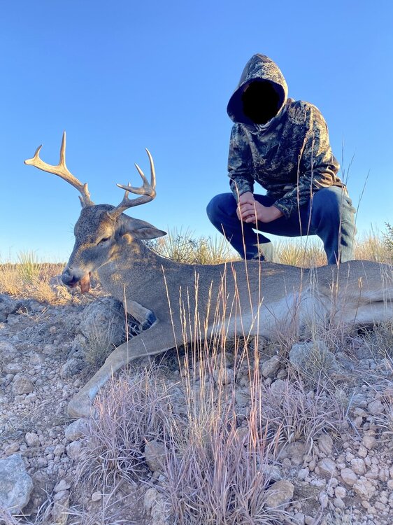 My son got him a nice sized buck yesterday in Scurry County as he was following the does around from feeder to feeder. My brother says this one was new to our place this year and looked old and maxed out with that crabby fork so it was time for him to go. Broken brow tine and some other antler damage, too, so he was clearly acquainted with the locals. One we got inside we could see that the bullet had sheared off the top half of the heart before it got to the lungs. I've never see that much blood inside of a deer.10 points