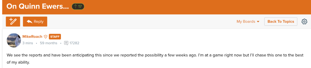 Looks like Ewers dad wasn’t bullshitting. If Sarkisian fails to land Ewers, he should be fired before Christmas. Just end it and start over. If he lands Ewers, he gets an all-time get out of jail free card and I get $1000.30 points