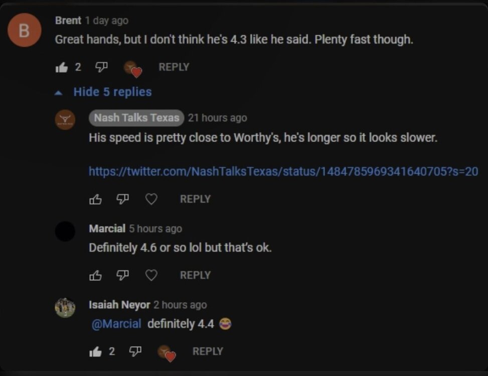 In one of these threads I said Texas would be stupid if they weren't pursuing this kid. Glad to see they are on their game. This kid's mom is a friend of my wife and his little sister is my kid's teammate. Pops played for pig but I forgave him already. Mom played bball for Tulsa. He is every bit of 6'5 and is filling out everyday. Smart kid, the kind you want playing here. If his speed stays up as he gains weight he will be a problem. Hope we get him. I will stay in his ear on my side. Hope the coaches close the deal.9 points