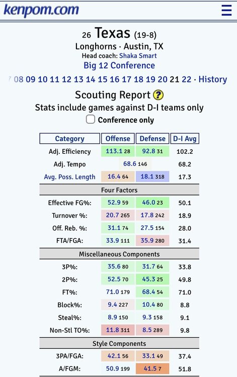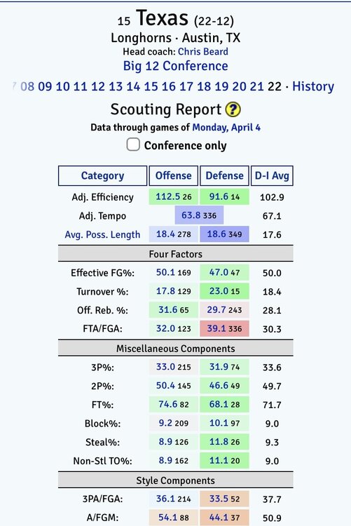 2021 under Shaka: and 2022 under Beard: Shaka Smart had three NBA players in his front court alone, and a senior, now-G League stud at PG. Chris Beard had zero NBA players. Shaka Smart had a deep, experienced, physically gifted roster. The players who weren't run off by Shaka were grossly misused and otherwise stunted by their head coach. Chris Beard had a total of five players actually good enough to play in the Big XII, none of whom will play in the NBA, and three of whom transferred into the program last summer. Chris Beard navigated them through the toughest league in America, beat the national champion, finished #15 in kenpom, and won a Tourney game for the first time since Rick Barnes was here. Chirs Beard produced a better offense, a better defense, and a much more consistent and all around better team in his hectic, fast-tracked, first year at Texas than Shaka did in his sixth year with his absolute dream roster. I know a lot of people both here and in real life who aren't yet understanding what Beard is doing, and who sadly can't see the job that he did this year for what it is: an unmitigated success. Chris Beard just took a team with no size, no athletes, and no shooters, not to mention a total lack of chemistry, all in their first year in his system, and he had a better season out of the gate than Shaka ever did in six years at Texas. You don't think we play into the second weekend and possibly beyond if we have Kai Jones, Jaxson Hayes, Mo Bamba, Matt Coleman, etc? Please. Chris Beard just showed the world that his floor is higher than Shaka's ceiling. Wait until he gets a chance to recruit his own guys to the 40 Acres year after year after year, in the Moody Center, where we will hopefully/realistically one day hang a national championship banner. Yeah. Get excited people. I know that this wasn't exactly the Showtime Lakers we watched last year, but make no mistake about it- Chris Beard is an elite tier coach, and for the first time since ~January 2010, this program legitimately has a chance to have success like it's never seen before. Can't wait. 🤘🏼13 points