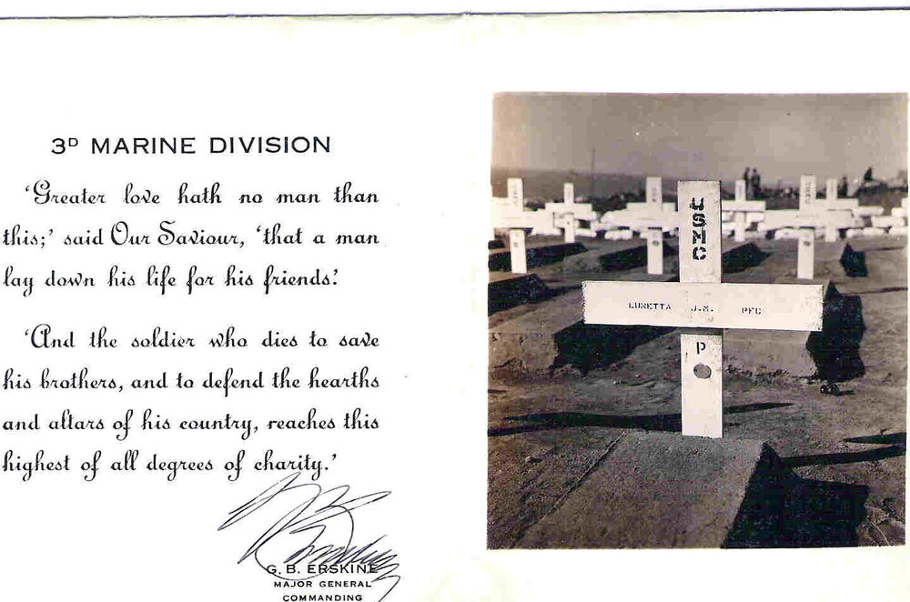 I've written about him before, but I think it bears repeating... The day after the flag raising on Iwo Jima, my dad's youngest Uncle, Jasper, better known as "Bunch" ( a nickname given to him by my great-grandmother) was a part of the attack to take Motiyama Airfield #2 in the middle of the island. (pic below with my great aunt Jean and my grandmother to the far right, Bunch is to the left and was still in high school in this pic. My grandmother was the oldest, 15 yrs his senior, with Bunch the youngest sibling). Bunch served as a BAR man, and had previously seen combat on Guam with K Co. 21st Marines, 3rd Marine Division. The pics of his watch are with the band made from aluminum from a downed Japanese Zero while on Guam. The jungle destroyed leather wristbands, and most made metal bands for their watches because of this. The palm trees were punched by him with a nail. Bunch didn't need to serve, as both his older brothers, Giuseppe (Pep) and George were already in the Pacific. Pep as a SeaBee building airstrips on captured islands, and George as a Marine Sergeant in the 1st Marine Division. Bunch had also accidentally shot himself with a .22 in the foot when he was a younger teenager while hunting frogs. This made him a 4F designee but he still wanted to serve. Twice turned down by the Army and once by the Marines he was finally accepted into the Marine Reserves on his 4th try. The 21st Marines weren't to be used on Iwo, initially to be held in reserve but casualties were so high in the 4th and 5th Divisions, that they were sent in late on the first and following days. The morning of the 24th, K Co would be the attacking company in the center of the airfield. According to the letter that was sent to my great-grandmother (one that I have been able to read), Bunch was out front of the company giving covering fire and halfway across the airfield when he was hit by deadly and accurate mortar fire, killing him. My great uncle had just reached his 19th birthday earlier that February. Though I never met her, I was told my great-grandmother never got over his death. Like over 6000 other Marines, Bunch was initially interred in the 3rd Marine Division Cemetary on Iwo Jima. After the war, my- great grandmother had him brought home to South Texas where he is buried in his hometown of Crystal City. RIP Uncle Bunch edit: The watch and other affects were passed down to one of my Dad's cousins ( I wish had them but at least they are in good keeping). The watch keeps perfect time and is wound by him every year on this day, Memorial Day.8 points