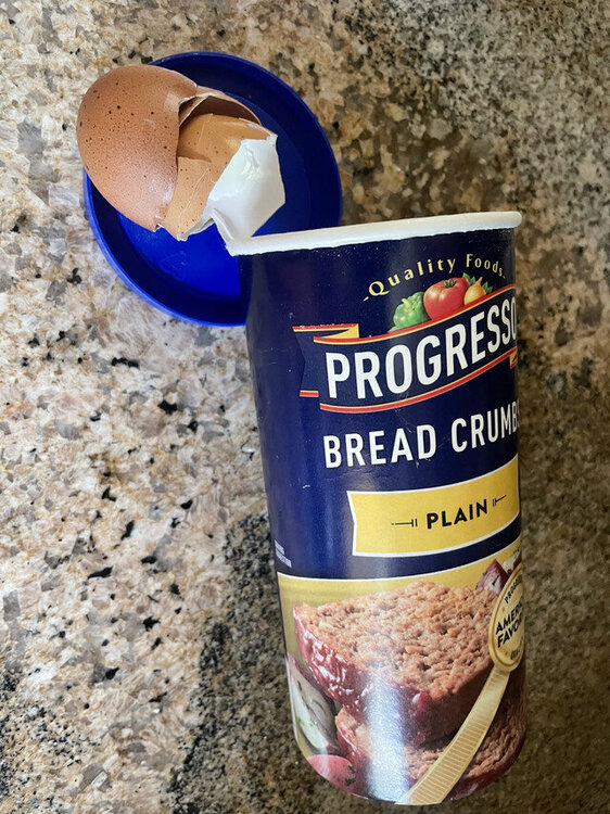the last part first: I needed some bread crumbs for tonight's dinner recipe. I pulled this out of the cabinet: empty, except for the egg shells. must have been from when she made meatballs, however many weeks ago. corking the empty wine bottle and leaving it on the counter every time is annoying, but whatever. this? come the fuck on.8 points