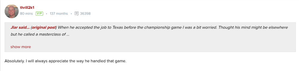 A few things: -Regarding Jordan Hall, it's not a pipe dream, so that's one to watch. -Regarding the Safety from Georgia - pipe dream to ignore. -Hicks is going to watch a bunch of freshmen playing all over the DL to ATM this season before he announces at the UA all star game in January. He's also not the type to be excited about being the only standout in a class and he's very NIL educated. I have now gone from pipe dream to believing that Texas is the smart bet. -Gullette's top two are Texas and a distant second of Ohio State. I don't see the guy going to the ATM pool party, but maybe he does. If the recruit had the only say in things, he'd have shut everything down already. -When Greathouse picks Notre Dame, it will be interesting to see if Texas isn't willing to take both Hale and MHP. Seems like they will. -USC is a legitimate threat for Shelby but it's a good sign that he decided to avoid the aggie gathering. Getting pestered on social media to come to it from the likes of Taylor Hamm and his fanboys didn't help ATM's cause. -Shanahan got laughably overranked by Rivals early and his family bought it. If he had a committable offer from Bama, Georgia, or Clemson, he'd be taking it. Interest with Texas is largely one-sided. -Either Texas finds a difference maker at OT that they like or they pass from here on out. The guy from East St. Louis is a legit target with real interest. -Jamarious Brown would be a huge get, but Alabama probably wants him. Not sure the NIL-side will be a differentiator for anyone if Bama pushes. -Guys that I know people can feel good about: MM, Baxter, Hill, MHP, Gullette, Hale. Guys we are not fooling ourselves in following: Hicks, Shelby. Guys that would mean Texas has crushed it in recruiting and is winning on the field: Brown, Hall, East St. Louis, Robinson. Guys I forgot to ask anyone about: Vasek, Toviano, Matthews, Osborne, Akana, whoever else I didn't list. -Fully weaponized NIL initiatives: Texas, Oregon, Ohio State, Miami. NIL programs figuring things out or already fired up but incapable of creating a competitive advantage at the top level: SEC powers, Notre Dame, Louisville, PSU, Michigan, Houston, Ole Miss, Texas Tech, Tennessee. ND and Michigan eventually move into the first tier due to alumni power. NIL programs with their heads firmly up their own asses: Texas ATM, Pac 12, Baylor, TCU, Clemson, North Carolina, FSU. NIL Programs that qualify for the X-Files right now: USC, OU.12 points