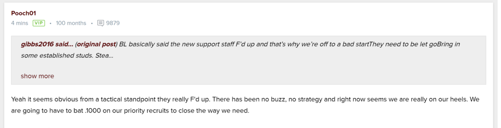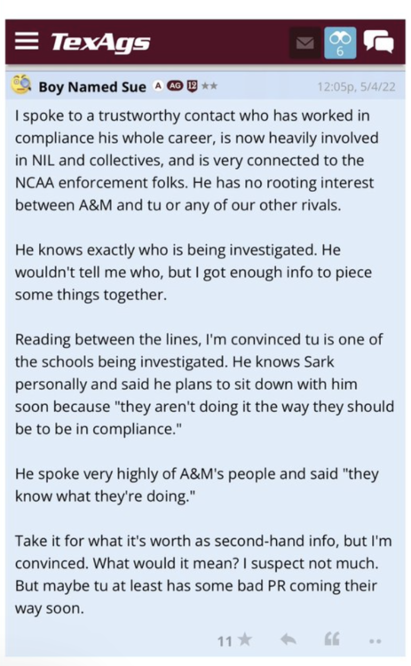 It’s the “HS coaches say” and “we’re paying up front” that gets me. I’ll tell you what, a dime hasn’t been paid out yet to anyone. I think i’d fucking know. I also haven’t spoken to a fucking HS coach either. maybe a rogue booster is doing all of this shit. Which seems unlikely considering the aversion to cheating we’ve had forever and my own experience trying to get well-heeled donors to cut checks for this shit. it’s almost like a segment of people who are dumb and prone to believing in conspiracy theories are full of shit and don’t know what they’re talking about.18 points