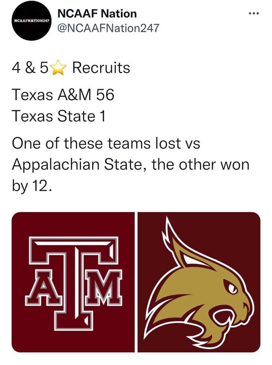 I for one am totally shocked that you are bullish on an A&M QB you've never seen play. I can't quite place my finger on what set of fans that makes you seem like.17 points