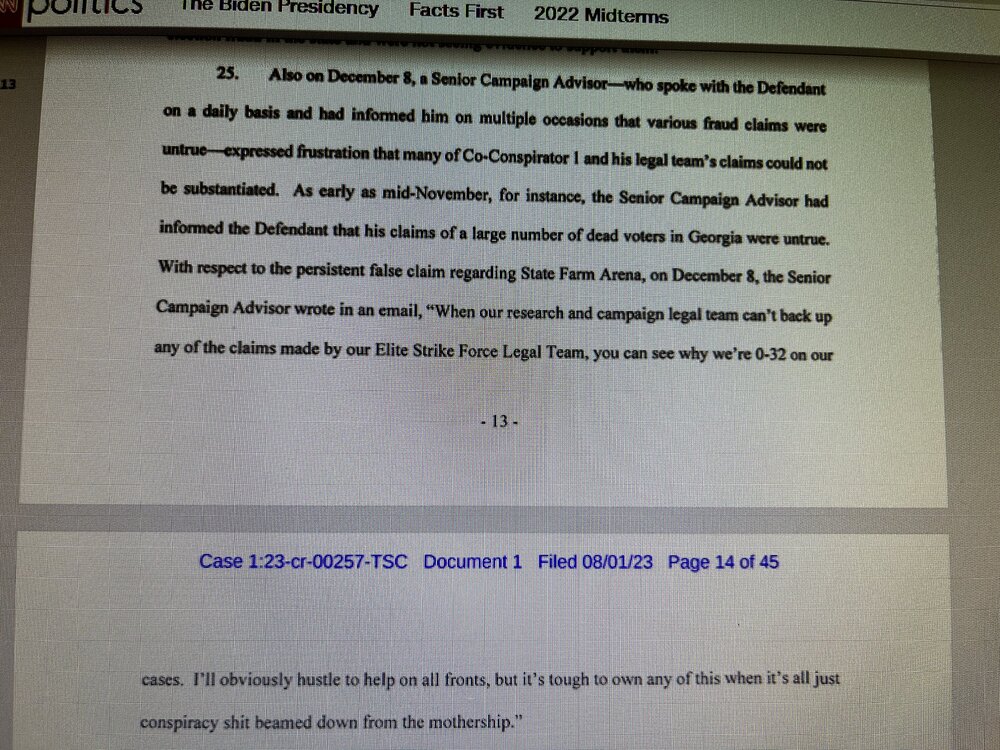 “ When our research campaign legal team can’t back up any of the claims made by our Elite Strike Task Force Legal Team, you can see why we’re 0–32 on our cases. I’ll obviously hustle to help at all fronts, but it’s tough to own any of this when it’s all just conspiracy shit beam down from the mothership.”21 points