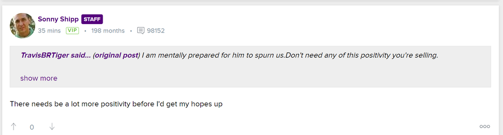 🙂 On Brandon Baker. This sounded really good. From the Buckeye 247 staff today - a combination of Kurelic and a couple of their other guys/sources. (Recently, Wiltfong said he thought it was Texas vs. Ohio State.) The gist: - until recently, they thought Ohio State led for Baker. They don't anymore. - as of now, they give Texas the nod. Not over, but it sounds like Texas. - they are competitive with (their) NIL, but when oil money goes all in, hard to match. On a related note, they talked about Baker as a prospect, and they were absolutely gushing. Remember, this is Ohio State, with a zillion 5 stars in this class and across their roster. So it's not like seeing 5 stars is anything new for them. Some paraphrased excerpts: - hate comparing prospects with the best in the NFL, but if there's one guy with whom you do it, it's Baker. - a dancer. Surefire NFL talent. If they were sitting with millionaire donors and could use the money for one guy, they would do it for Baker. - don't want to talk about him because they may start crying ... hard "breaking up" with someone. From an NFL standpoint, as much of a sure thing as you can get. "But that's what you're losing ..." So yeah, hope we get the guy.26 points
